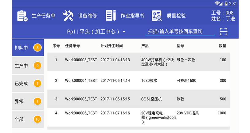 控制台是生产监控的基础功能,所有计划下达的生产任务均全部由控制台进行分发管控。通过控制台可随便调整任务所需 的相关资源,如物料、人员、工作中心等资源,具体功能体现如下: