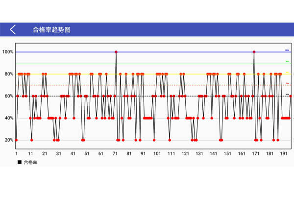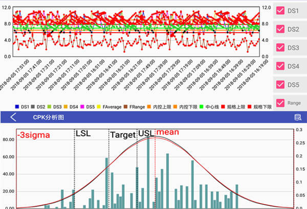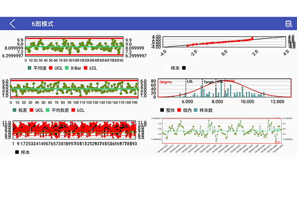 自动计算 Average、Range、内控上限、内控下限、中心线、最大值、最小值等。 了解整体的质量状况,为改进提供支持。